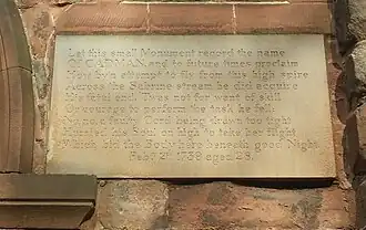 On 2 February 1739 he fell to his death when the rope broke. He was buried at St Mary's Church, where a commemorative plaque in his memory may still be found by the west entrance. It reads: