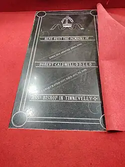 The Government of Tamil Nadu has created a memorial in his honor and a postage stamp has been issued in his name.[3][4] A statue of Caldwell was erected in 1967 near to Marina Beach, Chennai, as a gift of the Church of South India.