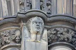 Fergusson is one of the sixteen Scottish poets and writers depicted on the lower section of the Scott Monument on Princes Street. He appears on the right side of the west face, opposite Robert Burns.
