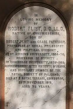 - ^ Sell, Alan P. F. (23 September 2004). "Flint, Robert (1838–1910), philosopher and theologian". Oxford Dictionary of National Biography. Vol. 1 (online ed.). Oxford University Press. doi:10.1093/ref:odnb/33180. (Subscription, Wikipedia Library access or UK public library membership required.)