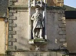 - Statue of David Ritchie, the Black Dwarf immortalised by Sir Walter Scott ay Hallyards House near Peebles.[4]