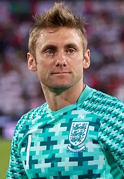 Green was brought back into the squad for the UEFA Euro 2012 qualifier against Montenegro in October 2010.[92] On 16 May 2012, new England manager Roy Hodgson named Green as part of his 23-man squad for UEFA Euro 2012.[93] On 26 May, he made his first appearance since the World Cup, and kept a clean sheet as England defeated Norway 1–0 in a friendly.[94]