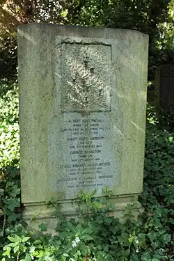He died on 2 August 1918. He is buried in Warriston Cemetery in north Edinburgh. The grave lies in the overgrown southern section south of the old railway line, to the south-east of the tunnel access.