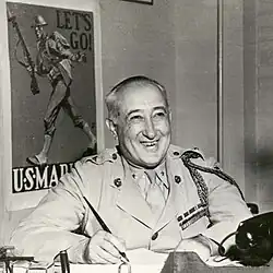 He was promoted to brigadier general on June 30, 1941, and put on the retired list. He was recalled to active duty for World War II and became the first Marine Corps director of public information.[5]