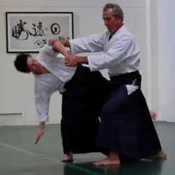 Robert Nadeau (born March 10, 1937) is an American aikido teacher holding the rank of 8th dan and master teacher(Shihan) in the Aikikai. He is well known as a pioneer in the energy and awareness aspects of aikido,[1][2][3][4] having dedicated his life's work to understanding and translating these principles handed down by Ueshiba into fields beyond aikido, including psychotherapy, personal development. Nadeau began training in martial arts at the age of 16 and began studying Aikido with American instructor Robert Tan.[5] After Training in Japan with the founder of Aikido, Morihei Ueshiba,[6] from 1962-1964 Nadeau returned to Northern California and opened a series of martial art schools sharing space with first Professor Sig Kuferat and later Richard Bunch through whom he has had on-going contact with several notable Ju-Jitsu schools[7] and which eventually led to the formation of the California Aikido Association.[8] He is one of three division heads of the California Aikido Association and is also the founder and head instructor of City Aikido of San Francisco, Aikido of San Jose, and Aikido of Mountain View, CA. Nadeau has taught workshops in the United States, Switzerland, Israel and New Zealand.