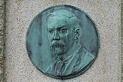 He died suddenly on 12 May 1917 at home at "The Neuk"[2] in East Linton and is buried nearby in Prestonkirk churchyard.[4] The grave lies near the north east corner of the church and has a bronze medallion portrait by Henry Snell Gamley.[5] He was an elder of the church there. He was an avid angler and golfer and was also a freemason.[2]