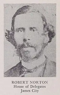 Robert Norton (born about 1840) was a former slave who became a member of the Virginia House of Delegates from 1869 until 1874 and 1876 until 1883.[1] He was one of three brothers who held office. His much older brother Frederick S. Norton was a member of the House of Delegates from 1869 until 1871, and his younger brother was Daniel M. Norton. The brothers were reportedly the children of a slave and her owner. They escaped to Troy, New York.