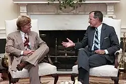 As an avid environmentalist, Redford is a trustee of the Natural Resources Defense Council. He endorsed Democratic President Barack Obama for re-election in 2012.[86] Redford is the first quote on the back cover of Donald Trump's book Crippled America (2015), saying of Trump's candidacy, "I'm glad he's in there, being the way he is, and saying what he says and the ways he says it, I think shakes things up and I think that is very needed."[87][88] A representative later clarified that Redford's statement, taken from a longer conversation with Larry King, was not intended to endorse Trump for president.[89]
