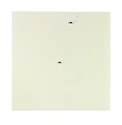 Ryman was often classified as a minimalist, but he preferred to be known as a "realist", explaining he was not interested in creating illusions, but only in presenting the materials he used in compositions at their face value. As he wrote in a statement for a 2010 exhibition at Pace Wildenstein, "I am not a picture painter. I work with real light and space, and since real light is an important aspect of the paintings, it always presents some problems."[10] The majority of his works feature abstract expressionist-influenced brushwork in white or off-white paint on square canvas or metal surfaces. A lifelong experimenter with media, Ryman painted and/or drew on canvas, linen, steel, aluminum, plexiglas, lumasite, vinyl, fiberglass, corrugated paper, burlap, newsprint, wallpaper, jute sacking, fiberplate, a composite material called gator board, feather board, handmade paper, and acrilivin. He used painted and/or drew with oil, acrylic, encaustic, Lascaux acrylic, casein, enamel, pastel, oil pastel, graphite, guache, and enamelac.
