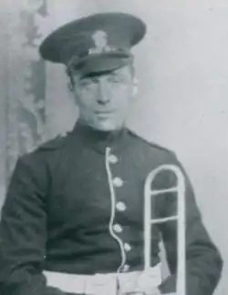 When Saint learned of the Gresford disaster in 1934, it had a lasting impression on him.[4] In response, he composed "Gresford", which biographer Robert Colls described as a tune "[giving] mining communities something to say at the end". The next year, he joined the Royal Northumberland Fusiliers as an army bandsman, playing the trombone. Saint's composition for the Gresford disaster was first performed publicly in 1938, during the Durham Miners' Gala.[3] All of the royalties he gained from "Gresford" were donated to the National Union of Mineworkers.[1]