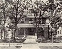 The club was an effort to help develop the talents of the city's many draftsmen so that they could become qualified architects themselves, at a time when a formal education for architects was generally unavailable and not required. (The first architectural school in the United States was founded by architect William Robert Ware at MIT in 1868 with nine students, and even by 1896, the year after Seyfarth's graduation, there were only nine schools in the country with a combined student body of 273.[41]) Seyfarth joined during the time he worked for Maher, who over the years was an active member of the club as a speaker, writer, exhibitor and judge in its annual competitions. Seyfarth is known to have entered his work at two of these exhibitions [42] - the first time in 1903 (before he became a member), when his submission was listed as a "Library",[43] and again in 1905, where the subject of the entry was his own house in Blue Island.[44] The preface to the catalogue of the 1905 exhibition was devoted to what the noted architect Elmer Grey (1872–1963) called "Inventive and Indigeonous Architecture", a phrase which perfectly reflected Seyfarth's design for this particular house and may have been one of the reasons why images of it were included.