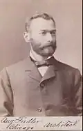 Robert Seyfarth graduated from the Chicago Manual Training School in 1895, and literature published by the school shows his position upon graduation to be that of a "Draughtsman" for the Chicago architect August Fiedler. Fiedler was born in Germany and came to the United States in 1869,[51] establishing himself first in New York City and then in Chicago as a much sought-after designer of high-end residential interiors, later becoming an architect. He designed some of the woodwork and other decoration for the Samuel Nickerson House (1879–1883) on Erie Street in Chicago [52] (now the Driehaus Museum), and the interiors of the Hegeler Carus Mansion (William W. Boyington,1874–1876) in LaSalle, Illinois.[53] In an 1881 letter to a colleague, one of Fiedler's contemporaries commented on the quality of Fiedler's design work for Nickerson by saying that "...it would be hard to comprehend its beauty without seeing it".[54] From 1893 to 1896 he was the chief architect for the Board of Education for the city of Chicago (being the first to assume the position upon the creation of the building department on January 18, 1893[55]), for whom he designed and/or supervised the construction of fifty-eight school buildings,[56] and he was responsible for the design of thirty-eight buildings (thirty-six in the German Village alone