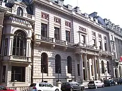 The Royal College of Physicians and Union Club building (1824–27) in Trafalgar Square (now Canada House)[39] The building is much altered, the north front though retains Smirke's hexastyle Ionic portico, and the east front (to Trafalgar Square) still has his portico in antis. The building is of Bath Stone. There were several extensions and remodellings during the 20th century.