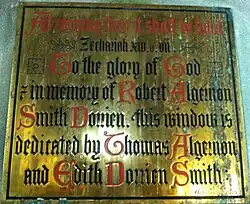 The plaque at St Peter's Church commemorating Robert Smith-Dorrien