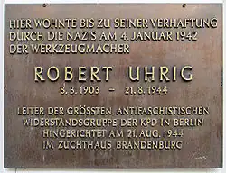 1. ^ a b c Short biography of Robert Uhrig German Resistance Memorial Center, Berlin. Retrieved March 25, 2010