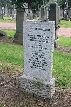 For three years he was connected with Thomas Chalmers's Territorial church sabbath school in the West Port, Edinburgh. From 1856 to 1861, he was a literary missionary and superintendent of the mission press at Surat; and during this time he added Gujarati to his acquirements. From 1864 to 1874 he conducted the ‘Missionary Institute;’ in 1867, he visited cities in the United States.[4] In 1871 he was an unsuccessful candidate for the Hebrew chair at the University of St Andrews. Most of his life was passed in Edinburgh, where he died at home, 14 Grange Terrace,[5] on 14 October 1888.
