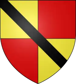 ![]() Arms of Robert FitzRoger (de Clavering): Quarterly or and gules, a bend sable[1] | |
