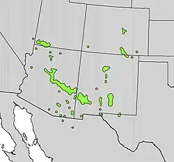 Robinia neomexicana is native to the Southwestern United States (southeastern California and southwestern Utah, Virgin River region,[4] east through Arizona and New Mexico, the Rio Grande valley, to far west Texas) and adjoining northern Mexico; from central New Mexico the range extends north into Colorado, mostly the eastern foothills of the Rocky Mountains. In Arizona, it ranges across the Arizona transition zone, the Mogollon Rim and White Mountains, and into western and southwestern New Mexico.[4]