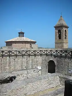 Along with the South Tower and the curtain wall connecting them, it was the external front of the fortress. It had two fire levels, the first one on the gun emplacement at the top, which was protected by merlons and embrasures, and the second one at ground level in the casemate with a reconstructed barrel vaulted ceiling and three embrasures.