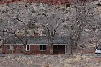 The Rock House was built as a residence for the National Park Service custodian of Arches National Monument, now Arches National Park, in 1941. Constructed using Civilian Conservation Corps labor, the residence served its purpose until it was replaced by newer housing under the Park Service's Mission 66 program. The house is built of local stone in a coursed rubble pattern, with painted milled wood trim. The house was designed by Verland Norgard, in a style that combines rustic elements with Greek Revival and Federal style details. Two small, non-contributing additions have been constructed to the rear of the house, and the interior, which has been extensively modified, does not retain its historic integrity.[2]