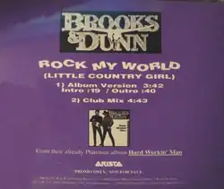 "Rock My World (Little Country Girl)" is a song written by Bill LaBounty and Steve O'Brien and recorded by American country music duo Brooks & Dunn. It was released in December 1993 as the fourth single from Brooks & Dunn's album Hard Workin' Man. It is also their second single to feature Kix Brooks on lead vocals instead of Ronnie Dunn. The song peaked at number 2 on the US Billboard Hot Country Singles & Tracks (now Hot Country Songs) chart.[1]