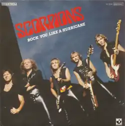 "Rock You Like a Hurricane" is a song by the German hard rock band Scorpions, considered their signature song. It was released as the lead single from their ninth studio album, Love at First Sting (1984). It was written by Klaus Meine, Herman Rarebell, Rudolf Schenker and arranged/produced by Dieter Dierks. The lyrics of "Rock You Like a Hurricane" also reference the title of the album on which it originally appeared – Love at First Sting.[8]
