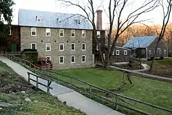 Rockland Grist Mill dates to at least 1810, and has been used for a variety of purposes, including manufacture of calico, cotton spinning, production of wooden toys and artificial silk, food preservation additives and jewelry cleaning solutions.[3]