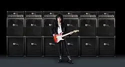 Rocky and a wall of ENGL Amps with "Ace," one of his Fender Stratocasters