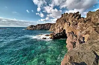 A rocky shore is an intertidal area of seacoasts where solid rock predominates. Rocky shores are biologically rich environments, and are a useful "natural laboratory" for studying intertidal ecology and other biological processes. Due to their high accessibility, they have been well studied for a long time and their species are well known.[1][2]