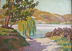 Hipkins arrived in Napier in 1922, as one of a number of La Trobe artists brought to New Zealand to improve the teaching of art in the country; other artists who came under the scheme included Robert Nettleton Field, Christopher Perkins and Francis Shurrock.[4] Hipkins took up the position of art teacher at the Napier Technical College, and helped establish the Napier Society of Arts and Crafts in 1923.[5][6]