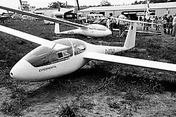 As far as possible, components from the serially-produced LS1 sailplane were used, including the fuselage forms. This resulted in a cramped cockpit, where the pedals of the rear seat are almost upon the front seat control stick. The two-piece canopy extends back up to the wing spar. The undercarriage comprises fixed wheel and tailskid. The very large rudder is quite striking. The wings were extended at the root by approximately one and a half metres, yielding a span of eighteen metres, with two degrees of negative sweep. Schempp Hirth airbrakes sprout from the wing upper surfaces. Separate actions for the nose-hook and centre of gravity hook are the only control oddity in this pleasant-flying design. The empty weight of only 287 kg is remarkably light for a double-seater.