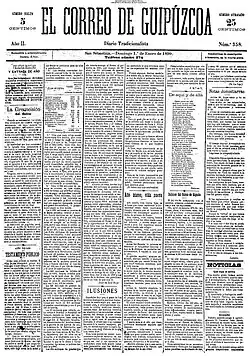 It seems that already at home Roman was formed as a Traditionalist,[28] though it is not clear whether of the Integrist or rather of the mainstream Carlist breed. During his academic years he clearly sided with the latter and was noted as member of Juventud Carlista.[29] When back in Pamplona he engaged in party initiatives; apparently considered an erudite, he was entrusted with delivering addresses to local audience, e.g. during opening of a new city círculo in 1906.[30] In early 1908 Oyarzun moved to San Sebastián[31] to join the staff of El Correo de Guipúzcoa, an 1898-founded daily owned by one of the Carlist Vascongadas leaders, José Pascual de Liñán.[32] Oyarzun was contracted as editor-in-chief and maintained militantly Traditionalist, though also vehemently anti-Integrist line of the paper.[33] He contributed to other party initiatives in the region; in 1908 he co-organized a huge meeting demanding reinstatement of Gipuzkoan fueros, known as Acto de Zumárraga.[34] The amassment, claimed politically by the Carlists and Basque nationalists alike, gathered some 25,000 people and was reported in nationwide press.[35] In wake of the feast, El Correo published pieces later denounced as instigation to rebellion; Oyarzun was brought to court. As a lawyer he defended himself and though initially the odds were against him,[36] he was finally absolved.[37] Two years later he resigned from editorial duties quoting family issues and returned to Pamplona.[38]