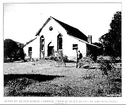 Father Francis Salvado called for tenders to build a new church in Newcastle in 1862;[3] the original St John the Baptist Church was blessed in time for Christmas 1864.[4] By 1874 an unofficial Catholic school for 30 or more children was also being conducted in a room at the rear of the church.[5] In 1884 three Sisters of Mercy came from Perth to take on the responsibility of educating the local Catholic children. They established a temporary convent in the upper section of Mr. & Mrs. Hassell's home in Folewood Road. Three months later,[6] with only limited funds and equipment, they opened a school in Leeder's House, previously owned by William Leeder.[7] In 1889 the former residence of Dr Growse was sold to the Roman Catholic Bishop of Perth for use by the sisters as a seminary.[8] (Growse's house was on the opposite side of the road to St John the Baptist Church.) The Sisters were able to purchase the building in their own right in 1902,[9] at which time they vacated the Leeder property.[10] The Sisters of Mercy were assisted by substantial endowments from the Connor family as they continued their work in the community. In 1903 their first project, a two-storey convent and school, was completed. The Sisters continued to use the Growse building, in later years as an infant school and for music classrooms.[10] The St Aloysius Convent of Mercy school expanded with the construction of the double storey boy's boarding house in 1920. In 1923 a modern presbytery was built for the parish priest across the road from the church on an adjoining block to the school buildings. The location of the earlier Catholic presbytery is unknown.[10] In 1929 the new single storey girl's boarding house was officially opened.[11]