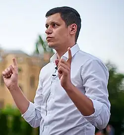 Roman Pavlovych Hryshchuk (Ukrainian: Роман Павлович Грищук; born 27 August 1989) is a Ukrainian politician, Member of the Ukrainian Parliament of the IX convocation; Member of the Verkhovna Rada Committee on Education, Science and Innovation. Former actor, head of the Mamahohotala studio, TV presenter.[1][2]