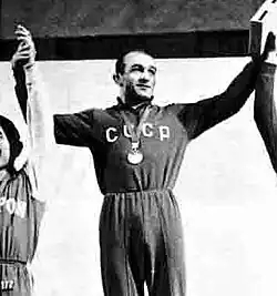 Roman Vladimirovich Rurua (Georgian: რომან რურუა, born 25 November 1942) is a retired featherweight Greco-Roman wrestler from Georgia. He competed for the Soviet Union at the 1964 and 1968 Summer Olympics and won a silver and a gold medal, respectively. Between 1966 ad 1970 he was undefeated internationally and won four consecutive world titles. At the 1971 World Championships he injured his back and placed sixth. Domestically, he won Soviet titles in different weight divisions in 1963–1965, 1967, 1970 and 1971. In 1972 he retired from competitions, graduated from Georgian Polytechnic Institute, and started to work as an engineer. In 1988 he co-founded the political organization Sporting Georgia, and in 1999–2003 was a member of Parliament of Georgia. Rurua also served as vice-president of the Georgian Wrestling Federation and was inducted into the FILA International Wrestling Hall of Fame in 2010.[1][2]