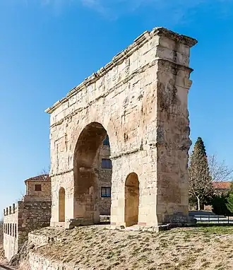 The Roman arch of Medinaceli (Spanish: Arco Romano de Medinaceli) is a Roman triumphal arch located in Medinaceli, in Castile and León, Spain. It is constructed in stone using a technique called opus quadratum. It was declared Bien de Interés Cultural in 1930.[1]