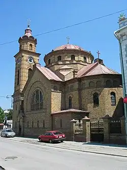 Serbian Orthodox Cathedral (right) and Serbian Orthodox Bishop's Palace (left) in Timișoara.