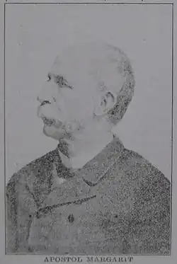 Throughout the high school's evolution, conflicts arose between Mărgărit, who was the inspector of the Romanian schools in Macedonia (Aromanian and Romanian: Macedonia), and a significant part of the teaching staff of the high school.[23] In April 1883, the high school's director Ioan Gheorghiade Murnu and three teachers, Andrei Bagav, Constantin Cairetti and Vangheli Petrescu, left the high school with some students and founded their own school in a rented building due to their opposition to Mărgărit.[24] These three latter teachers had left a strong positive impression on their students that lasted for a long time, with Arginteanu stating that "we students believed we were able to touch the sky with our hands and move the earth with our feet".[21] Over this case, Dimitri Atanasescu, the first teacher of the Romanian schools in Macedonia, accused Mărgărit of "ruining the High School of Bitola".[25] The situation would be repeated in 1890, when director Dimitrie Cosmulei and teachers Nicolae Maimuca and Ștefan Ciudela abandoned the high school.[26] According to Romanian historian and politician Ion Solcanu, these conflicts were likely due to Mărgărit's "authoritarianism".[23]