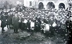 In this context, between the second half of the 19th century and the first decades of the 20th century, Romania opened over one hundred primary schools and several secondary schools in settlements in the Balkans with Aromanian populations.[10] Romania also opened churches for the Aromanians, which together with the schools contributed to the struggle for the awakening of their national consciousness.[11] This way, as of 1900 for instance, there were 113 Romanian primary schools and five secondary schools in the Ottoman Empire, as well as over 30 churches where religious service was given in Romanian.[12] Among these secondary schools was a boys' high school in Bitola and a vocational school for girls in the city[13] established in 1888.[14] The Aromanians of Ottoman Bitola also had several Romanian (as well as Greek for pro-Greek Aromanians) primary schools,[15] two churches of their own,[16] a cemetery[17] where several relevant Aromanian figures were buried (Dimitri Atanasescu, Constantin Belimace, Apostol Mărgărit),[18] a Romanian consulate[19] and a library.[20] An Aromanian church, the cemetery and a Romanian consulate still exist in today's Bitola.[7]