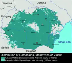 Geographic distribution of the Romanians