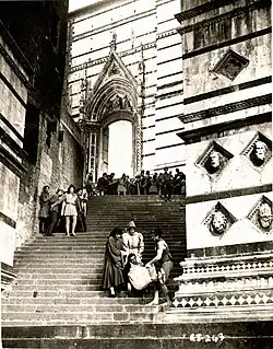 Renato Castellani won the Grand Prix at the Venice Film Festival for his 1954 film of Romeo and Juliet.[8] His film contains interpolated scenes intended to establish the class system and Catholicism of Renaissance Verona, and the nature of the feud. Some of Castellani's changes have been criticised as ineffective: interpolated dialogue is often banal, and the Prince's appearances are reimagined as formal hearings, undermining the spontaneity of Benvolio's defence of Romeo's behaviour in the duel scene.[9]