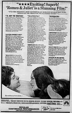 - ^ Ebert, Roger (15 October 1968). "Romeo and Juliet". The Chicago Sun-Times. Archived from the original on 13 July 2019. Retrieved 17 January 2014 – via RogerEbert.com.