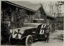 The Romfell armoured car was designed by Hauptmann Branko Romanić and Oberleutnant Simon Fellner (hence the name Romfell) for the Austro-Hungarian Army in 1915, based on a Mercedes 37/90 PS chassis.[1] Romanić and Fellner were supported by Lieutenant Emil Vidéky, Imre Kádár, and Lieutenants Ágoston and Fazekas. A private enterprise, the War Ministry was not informed of the car's construction until a Siemens and Halske radio was requested, at which point they became aware of the project and viewed it with disapproval.[2] A favorable report was given by Oberleutnant Erich Kurzel Edler von Runtscheiner so construction proceeded, with the car being finished by the end of July, 1915 at the Automotive Replacement Depot in Budapest.[3][4]