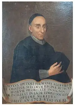 Romolo Spezioli (1642, in Fermo – 1723, in Rome) was an Italian doctor and the personal physician of the Ottoboni family, Queen Christina of Sweden, Cardinal Decio Azzolino and of Pope Alexander VIII.