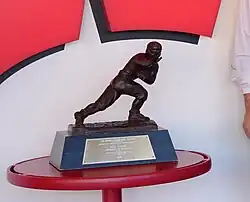 Dayne won the Heisman Trophy in 1999 as well as other awards throughout college, including Big Ten Player of the Year for 1999 and All-American placement in 1996, 1998 and 1999. His name and number is one of six displayed on the Camp Randall Stadium façade. Dayne's #33 was officially retired during the November 10, 2007, game against Michigan.[6]