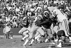 Ronald Vincent Jaworski (born March 23, 1951), nicknamed "Jaws", is an American former professional football quarterback who played in the National Football League (NFL) for 17 seasons. He played college football for the Youngstown State Penguins and was selected by the Los Angeles Rams in the second round of the 1973 NFL draft. After spending four seasons mostly as a backup for the Rams, Jaworski was traded to the Philadelphia Eagles in 1977, where he would lead the Eagles to four consecutive playoff appearances, including a division title and the franchise's first Super Bowl appearance in 1980. After 10 seasons with the Eagles, Jaworski signed with the Miami Dolphins, where he would spend two seasons as a backup.