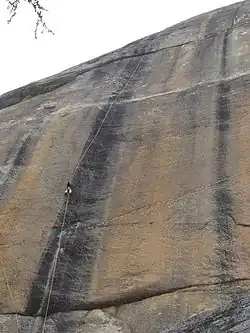 • 1978 Midnight Lightning, V8, Yosemite, CA. First ascent (FA). The most famous boulder problem in the world. A distinctive lightning bolt was drawn in chalk by John Bachar while the boulder was being attempted.
