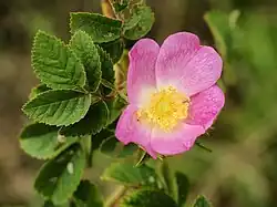 Rosa tomentosa, otherwise known as the harsh downy-rose,[1] is a species of wild rose. It is a shrub growing to about 3 metres (10 ft).[2] It is found in Asia Minor, the Caucasus (where it may not be native), and much of Europe: the British Isles, France, Central Europe, northern Spain, Italy, and the Balkans (except Greece).[3] On the British Isles it can be found in hedgerows and woodland margins, and it typically flowers between June and July.[4] Further south, in Bulgaria, it flowers in May.[5]