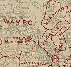 3. ^ "The History of Rosalie Shire". Rosalie Shire Council. Archived from the original on 4 July 2009. Retrieved 28 December 2013.