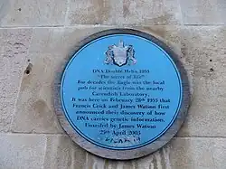 307. ^ Scotter, Kate (31 August 2023). "Cambridge pub's blue plaque replaced to recognise Rosalind Franklin". BBC News. Retrieved 4 August 2025.